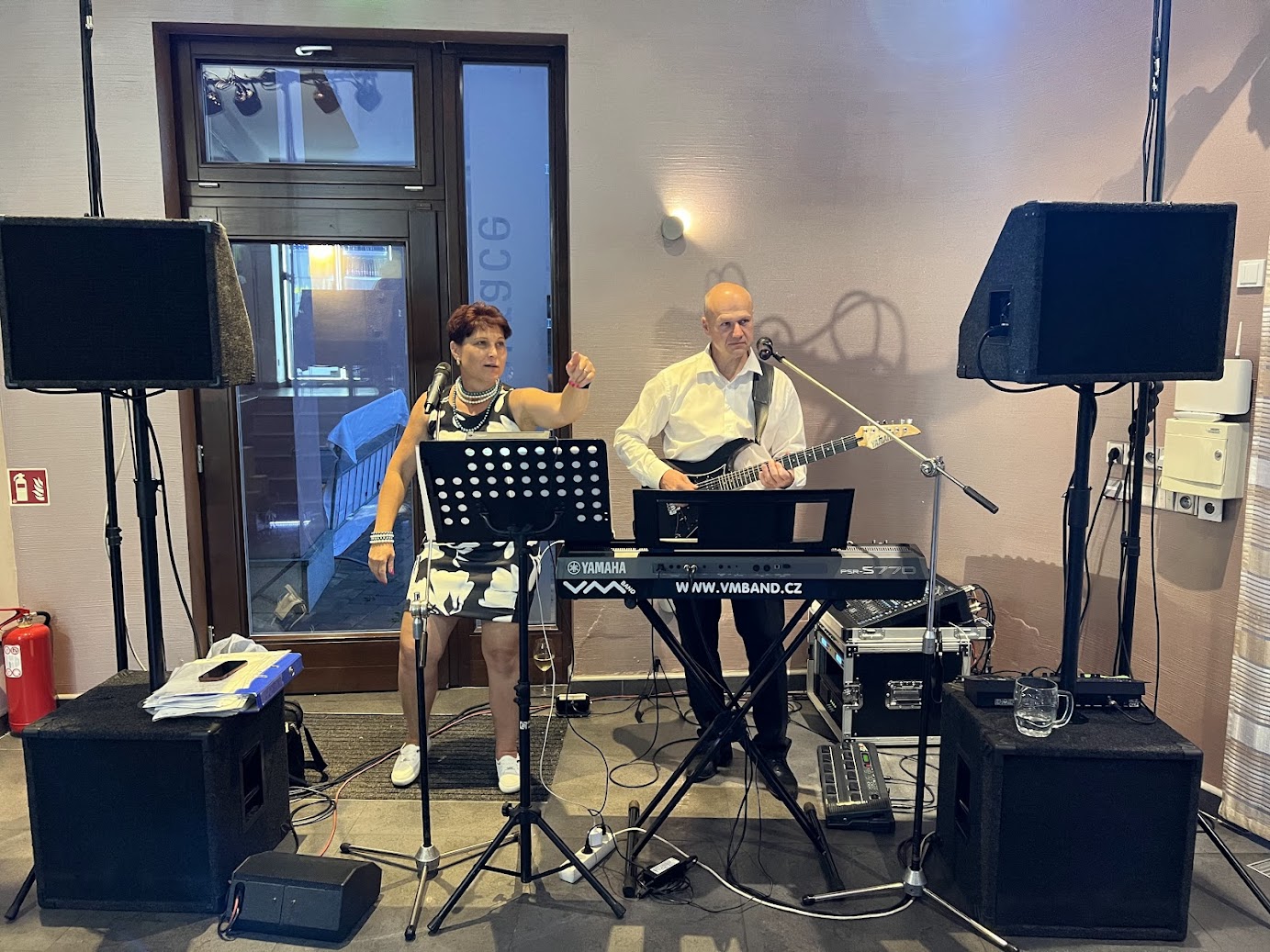 Hledáte hudební produkci na vaší akci? Tak to jste tady správně. Jsme dvoučlenná hudební skupina hrající na rodinných oslavách, svatbách, menších zábavách, karnevalech, soutěžích a spoustě dalších společenských akcí… VM band se rozjel v roce 2012. Oba jsme aktivně hráli a hrajeme ve větších kapelách, ale od roku 2012 se snažíme zároveň nabídnout cenově přijatelné řešení pro menší akce v sestavě dvou muzikantů – oba zpěv, kytara a klávesy. Nabízíme široký výběr českých i zahraničních písní, který neustále rozšiřujeme. Na seznamu se pracuje a částečný souhrn písní naleznete v sekci repertoár. Pokud máte zájem o naší kapelu, neváhejte nás kontaktovat. Odsouhlasené akce – tzn. již pevně obsazené termíny můžete shlédnout v záložce akce. Všechny dotazy a připomínky rádi zodpovíme. V brzké době plánujeme rozšíření o možnost komentářů, příspěvků, stažení hudebních ukázek, …